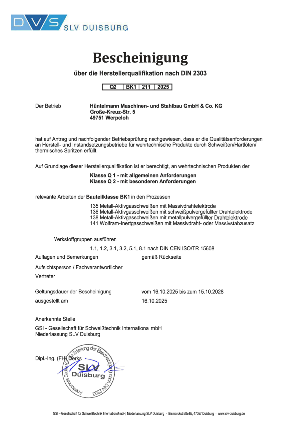 Unsere Zertifizierungen der Maschinen- und Stahlbau GmbH & Co. KG